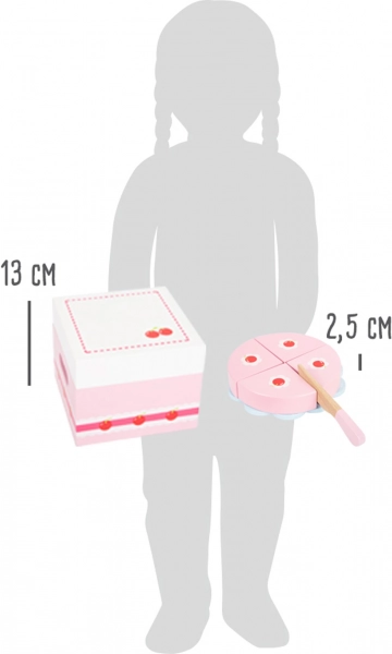 Vaikai gali dalinti tortą į gabalėlius ir vėl sujungti dėl lipukų – idealiai tinka smulkiajai motorikai lavinti ir realistiškam konditerijos žaidimui.