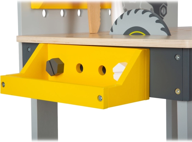 Vaikiškas darbo stalas Miniwob suteikia mažiesiems meistrams begalę galimybių lavinti įgūdžius. Su įvairiais įrankiais, tokiais kaip diskinis pjūklas, elektrinis atsuktuvas ir plaktukas, šis staliukas idealiai tinka kūrybiniam žaidimui ir smulkiosios motorikos gerinimui.