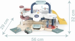 Smoby Little mano pirmoji garažas – nuostabus žaislas, kupinas linksmų funkcijų, sukurtų patiems mažiausiems. Garaže yra magiškas liftas, automobilių plovykla su besisukančiais šepečiais, degalinė, sraigtasparnių aikštelė ir dar daugiau – visa tai padeda vaikams lavinti vaizduotę ir koordinaciją, žaidžiant tiek „žemės“, tiek „oro“ nuotykius.