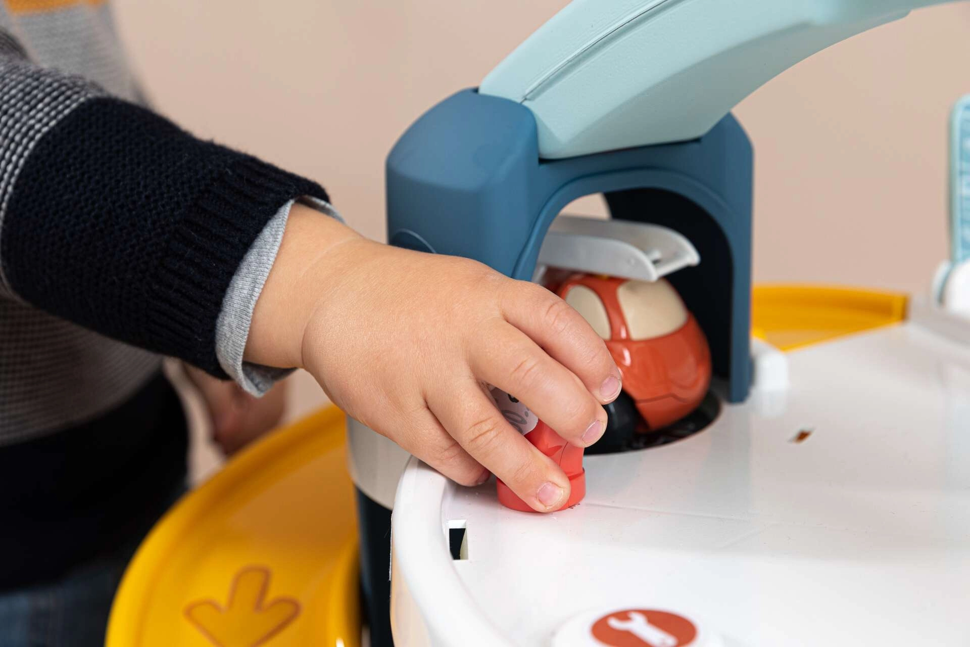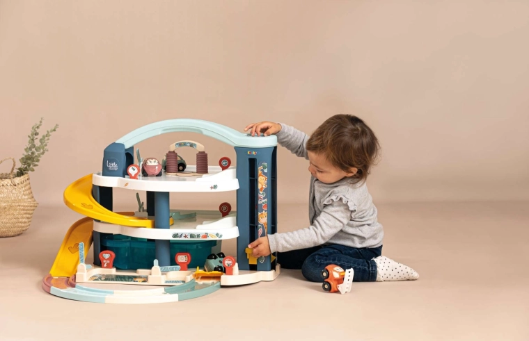 Tvirta konstrukcija ir apvalintos formos užtikrina saugų žaidimą net patiems mažiausiems. Integruota nešimo rankena ir daiktadėžė mašinėlėms palengvina tvarką ir žaislo pernešimą. Prekės ženklas Little Smoby iš Prancūzijos gamintojo SMOBY rūpinasi kokybe ir skatina sveiką vaikų raidą nuo 1924 metų.