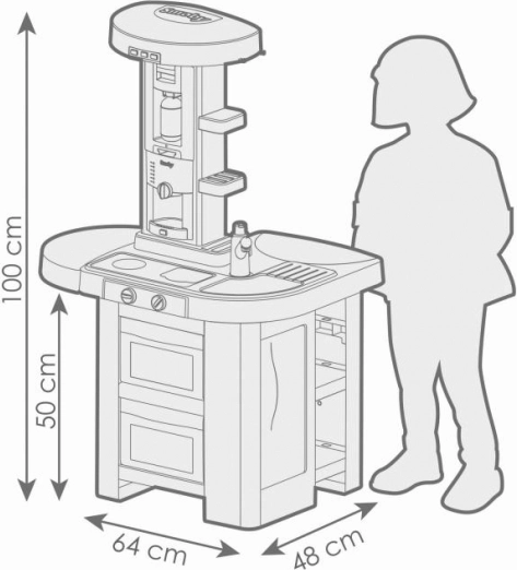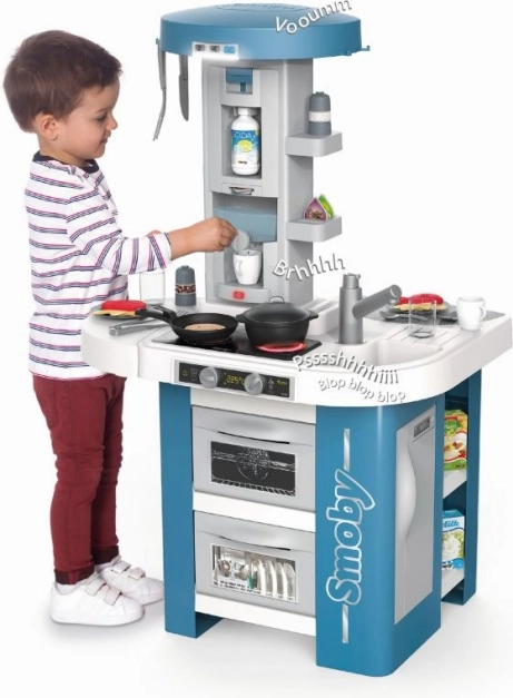 Virtuvės stalviršis aprūpintas modernia elektronine kaitlente su dviem virimo garsais ir raudona šviesa, kad imituotų tikrą gaminimą. Interaktyvus kavos aparatas su pildomu bakeliu atkuria kavos ruošimo procesą, o gartraukis siūlo tris garso lygius kartu su apšvietimu.