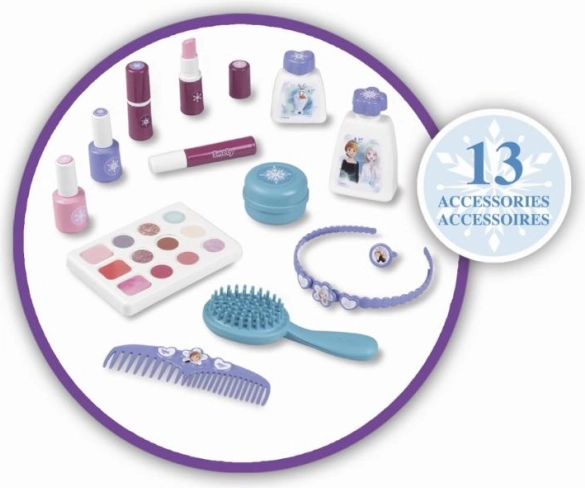Šis grožio rinkinys iš Frozen kolekcijos puikiai tinka vaikams, kurie mėgsta išbandyti naujus dalykus ir kurti įvairius stilingus įvaizdžius. Dėl kompaktiškų matmenų ir patogios rankenos šį nešiojamą rinkinį galima pasiimti bet kur. Rinkinyje yra: