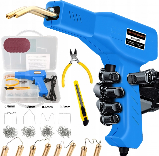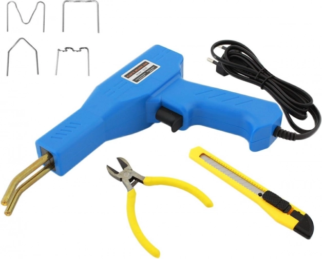 Kompaktiškas plastiko suvirinimo įrenginys su 200 plieninių sąsagų idealiai tinka plastiko detalių taisymui ir plastikų suvirinimui. Komplekte yra peilis ir replės, palengvinantys plastiko formavimą, bei patogus dėklas lengvam nešiojimui ir laikymui.