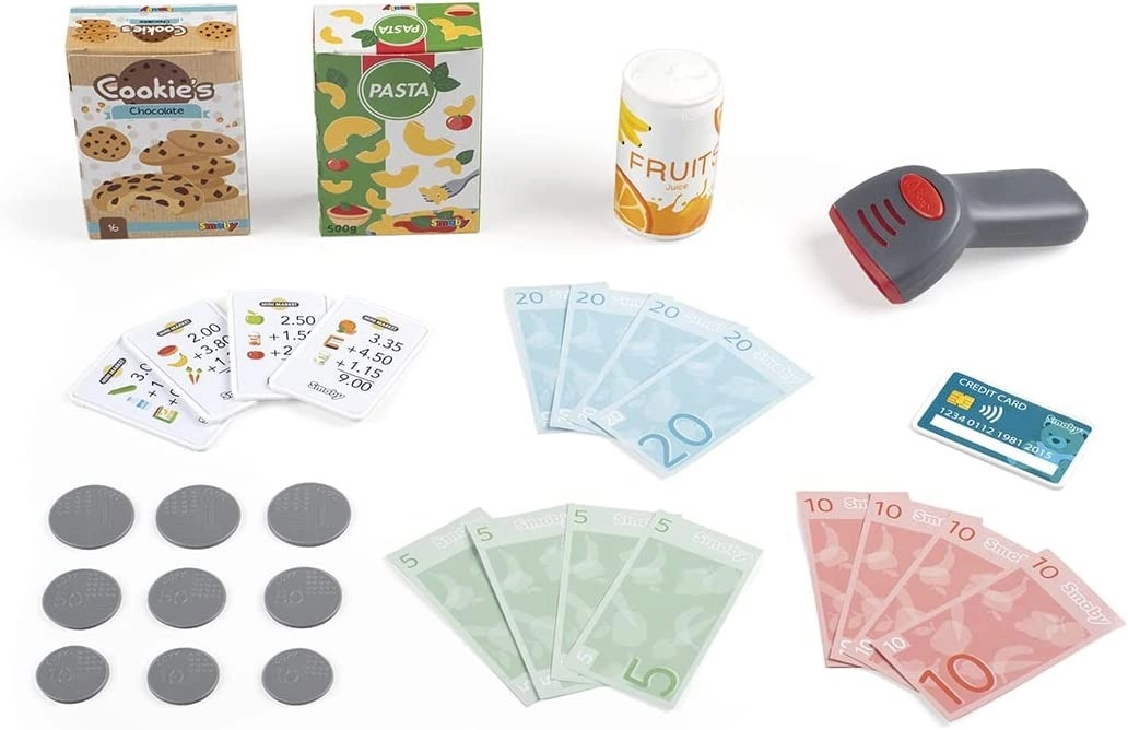Žaidimas lavina skaičiavimo įgūdžius, smulkiąją motoriką ir socialinius gebėjimus, o dėl gausaus priedų rinkinio (miltiniai gaminiai, sausainiai, pinigai, čekiai, mokėjimo kortelė) kiekvienas apsipirkimas bus kitoks. Aukšta SMOBY kokybė užtikrina saugumą ir ilgaamžiškumą.