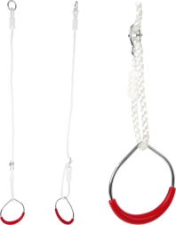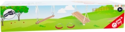Šis daugiafunkcis rinkinys mažiesiems akrobatams suteikia aktyvaus judėjimo ir džiaugsmo tiek sode, tiek vaikų kambaryje. Klasikinės medinės supynės, kabančioji skersinė ir gimnastikos žiedai su patogiomis plastikinėmis rankenomis padeda lavinti koordinaciją, jėgą ir pusiausvyrą.