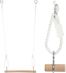 Dėl patvarių sintetinių virvių su reguliavimo sagtimi nustatysite optimalų aukštį kiekvienam vaikui. Dvi virvių komplektacijos leidžia vienu metu pakabinti ir naudoti dvi dalis. Paprasta pakabinimo sistema ir tvirtas medžio, metalo bei kokybiškų plastikų derinys užtikrina saugų ir stabilų naudojimą.