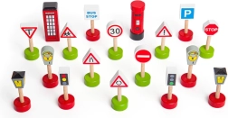 Atraskite žaismingą 18 medinių kelio ženklų rinkinį, kuris puikiai papildys bet kurią traukinių trasą ar miesto sceną. Dėl tvirtos medinės konstrukcijos ir aiškių simbolių vaikai lengvai supras kelių eismo taisykles. Rinkinys suderinamas su dauguma medinių traukinių rinkinių rinkoje ir skatina vaikų vaizduotę bei smulkiąją motoriką. Kokybiška mediena, saugus atlikimas ir edukacinis žaidimas viename.