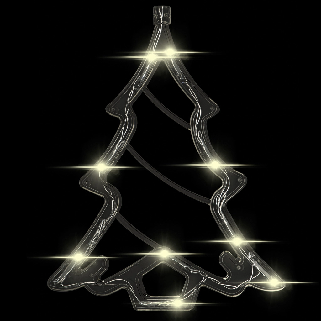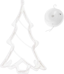 Ši kabinama LED dekoracija kalėdinės eglutės formos puikiai tinka langams, durims ir lygioms sienoms. Šiltos baltos LED lemputės šviečia iš abiejų pusių ir sukuria malonų, šventišką apšvietimą jūsų namams. Maitinimas baterijomis leidžia naudoti be elektros lizdo ir be laidų.