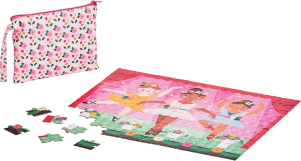 Sukite sceną su dvipuse vaikų dėlione su balerinomis! Rinkinyje yra 49 dalys ir net 2 originalūs dizainai priekinėje ir galinėje pusėje. Dėl patogaus užsegamo dėklo su užtrauktuku ji idealiai tinka namuose ir kelionėse. Pagaminta iš FSC popieriaus, o išorinis dėklas iš 100% perdirbto poliesterio, pakuotė be plastiko.