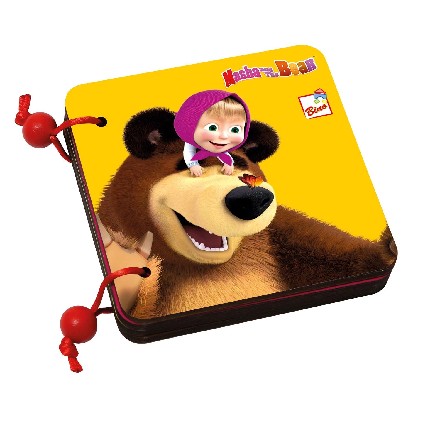 Ši medinė paveikslėlių knygelė idealiai tinka patiems mažiausiems, su pamėgtais motyvais iš vaikų serialo Maša ir lokys. Skatina paveikslėlių atpažinimą ir kalbinės raiškos vystymąsi vaikams.