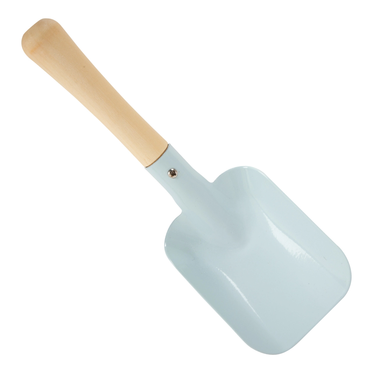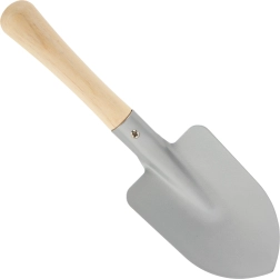 Lengvi, bet tvirti įrankiai – kastuvėlis, grėbliukas, semtuvėlis ir šakutė – sukurti mažoms rankoms ir tikram darbui sode.