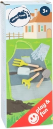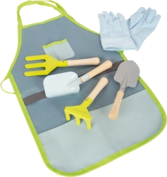 Praktiškas vaikų rinkinys mažiesiems sodininkams: prijuostė su kišenėmis, pirštinės ir keturi įrankiai – kastuvėlis, grėbliukas, semtuvėlis ir šakutė. Tvirti metaliniai įrankiai su medinėmis rankenomis puikiai tinka vaiko rankai, o prijuostė su kišenėmis ir pirštinės saugo drabužius ir rankas. Idealu tiek žaidimams, tiek tikram darbui sode, o taip pat pravers virtuvėje ar kūrybinėse veiklose.