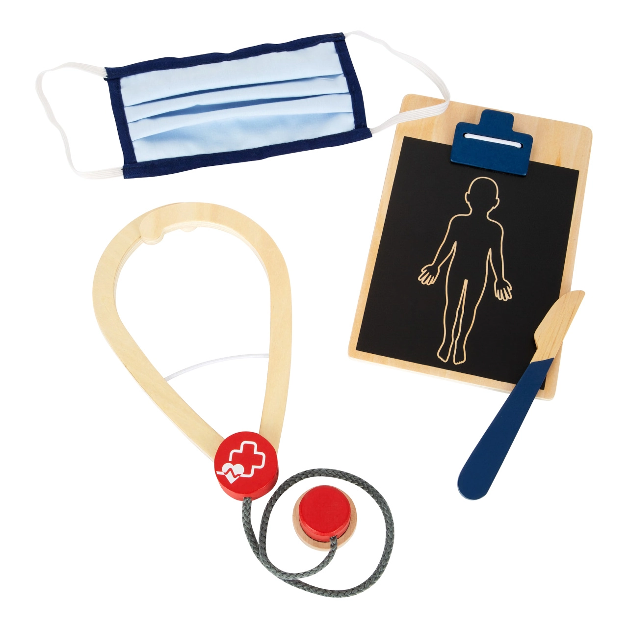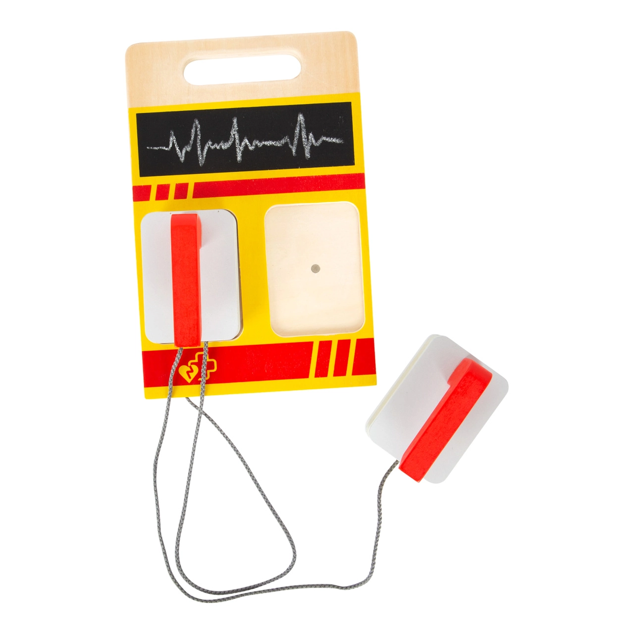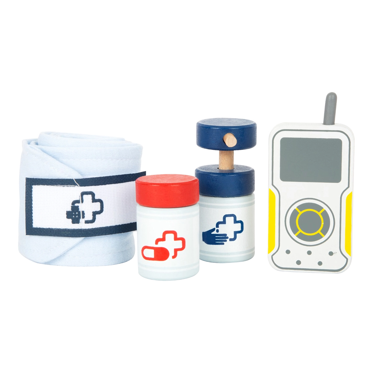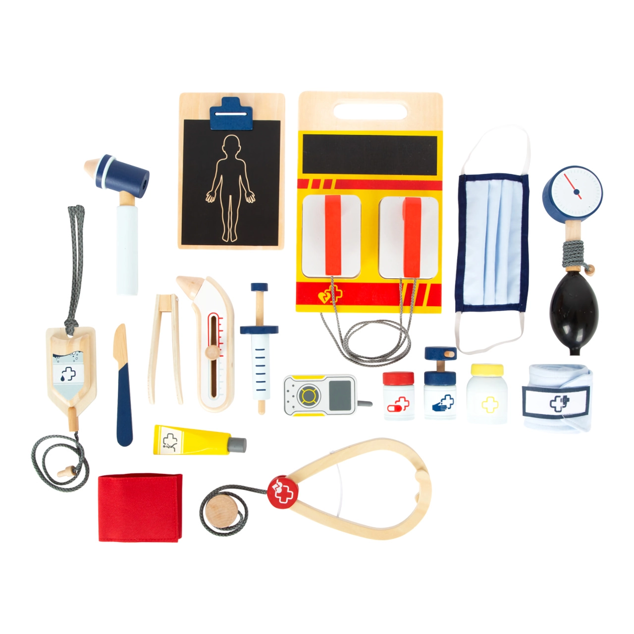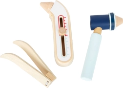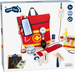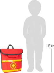 Ši gelbėtojo kuprinė idealiai tinka vaikų gydytojo žaidimams. Viduje rasite medinius įrankius, tokius kaip stetoskopas, termometras, otoskopas su lupa ir net defibriliatorius. Vaikai gali mokytis atpažinti medicininę įrangą ir imituoti gelbėjimo procedūras.