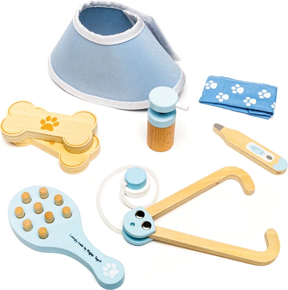Bigjigs Toys veterinarinis rinkinys vaikams – medinė gyvūnėlių priežiūros rinktinė, 12 vnt.