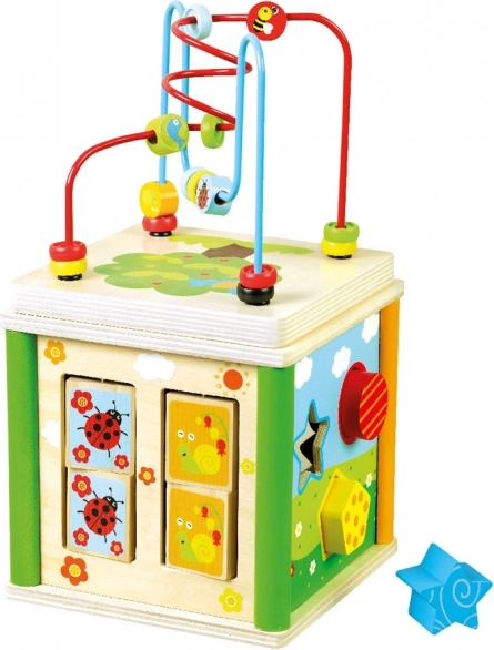 Dėka įvairių veiklų vaikai žaismingai lavina loginį mąstymą, sukaupimą ir kūrybiškumą. Kubas pagamintas iš patvarios medienos, papildytas metaliniais elementais, todėl atlaiko kasdienį vaikų tyrinėjimą.