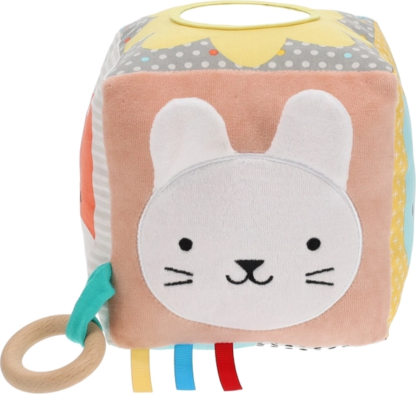 Šis audinio kubas tobulai sukurtas jūsų vaiko pojūčių raidai. Dėl įvairių veiklų – nuo draugiškų gyvūnėlių veidelių iki skirtingų audinių – jis puikiai tinka tyrinėti kiekvieną mažą detalę.