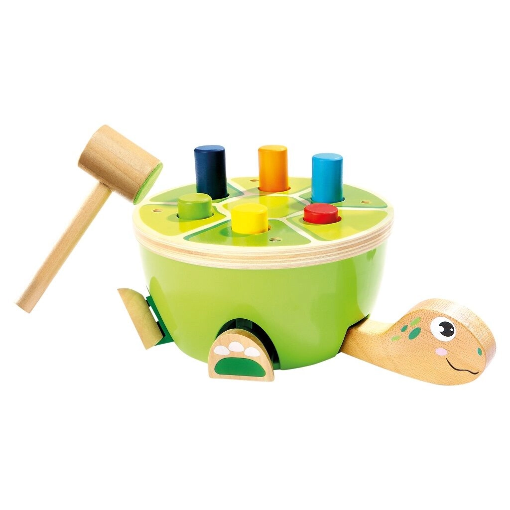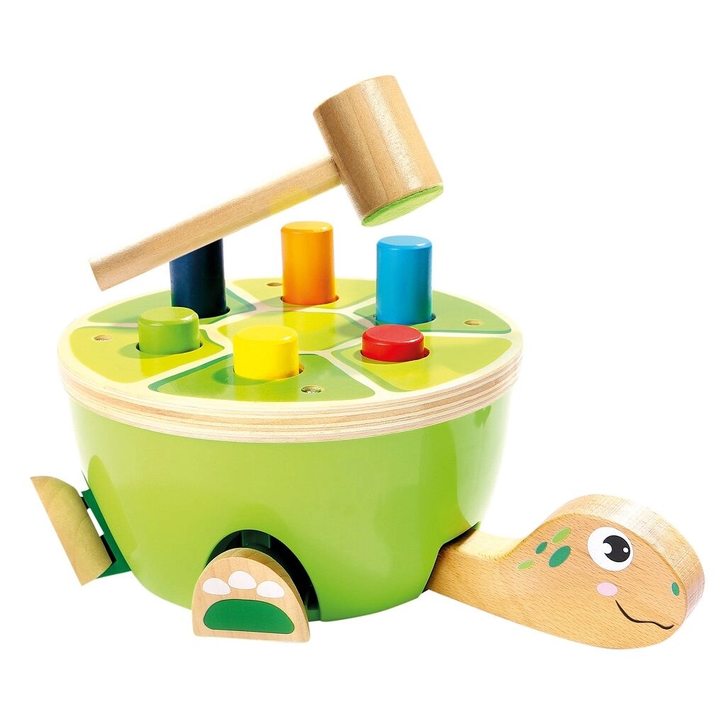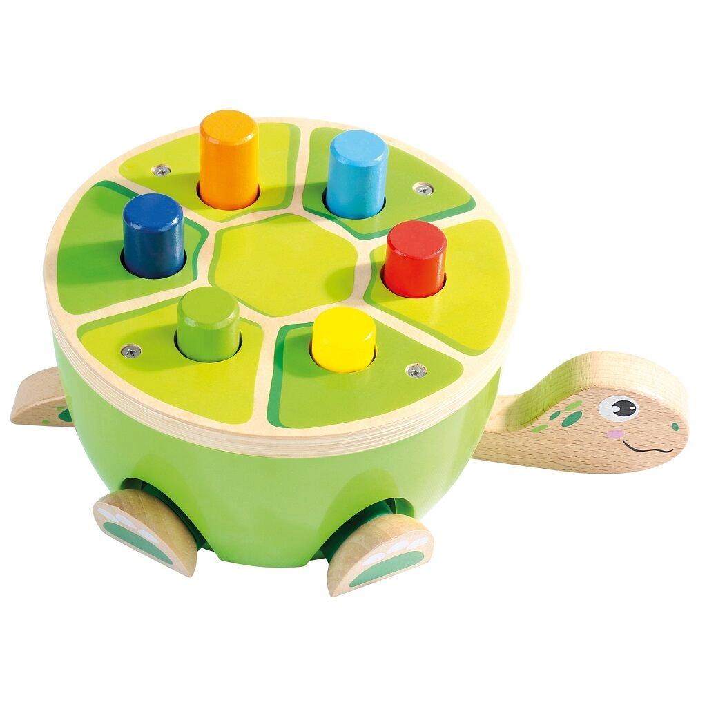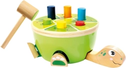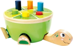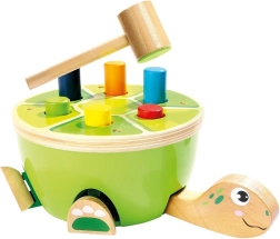 Smagus medinis kalimo žaislas vėžlio formos, kuris lavina vaikų smulkiąją motoriką, rankų ir akių koordinaciją bei sukaupimą. Spalvoti kaišteliai įkalami į šarvą plaktuku su veltinio danga, kad žaidimas būtų tylesnis, o vėžliui „atgyja“ kojos ir galva – puikus būdas skatinti smalsumą ir atradimo džiaugsmą.