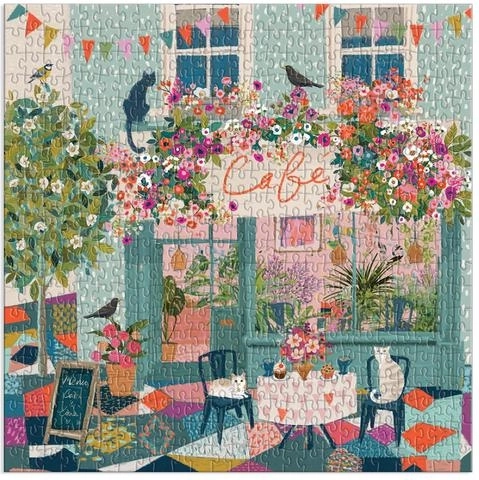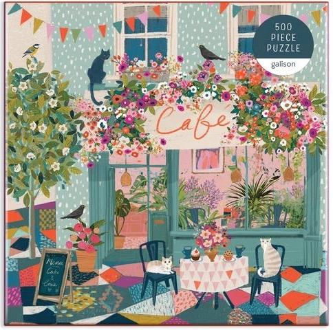 Atsipalaiduokite dėliodami gražų motyvą, sukurtą menininkės Victorios Ball – gatvės kavinę, pilną gėlių, kačių ir paukščių. Ši kokybiška 500 dalių dėlionė pasižymi aukščiausia kokybe, tiksliai besijungiančiomis dalimis ir yra atspausdinta netoksiškais dažais ant perdirbto popieriaus.