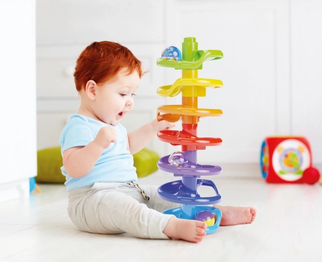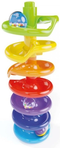 Spiral Tower sudaro didelės ir spalvingos dalys, kurios yra saugios mažiems vaikams. Dėl to jie gali drąsiai žaisti ir lavinti jutiminį suvokimą.