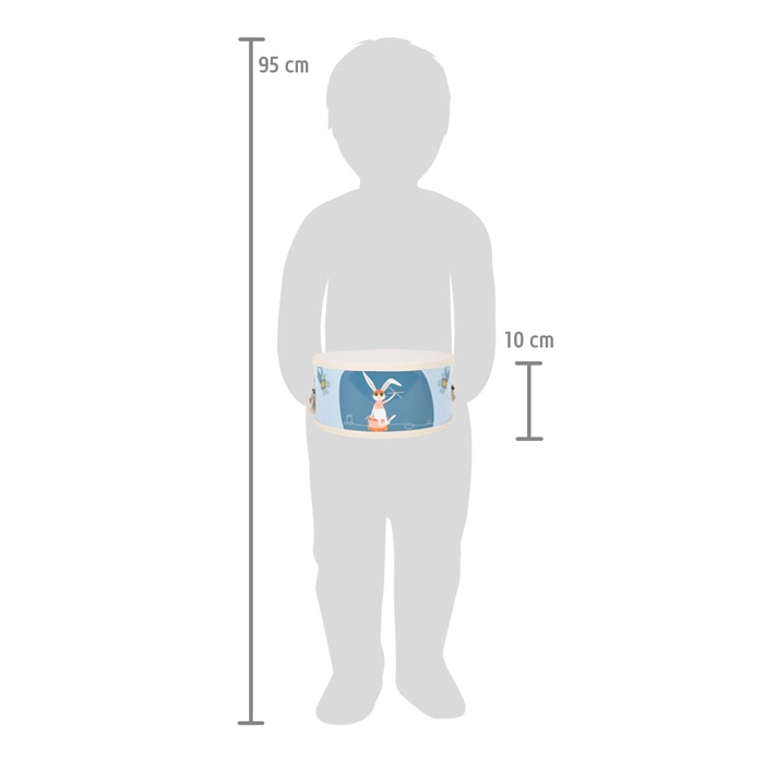Surenkite namų koncertus su šiuo stilingu vaikišku būgneliu! Dėl reguliuojamo medvilninio dirželio, tylių lazdelių su garso slopintuvais ir tvirtos medinės konstrukcijos jis idealiai tinka pirmajam žingsniui į muzikos pasaulį. Skatina ritmą, akių–rankų koordinaciją ir smulkiąją motoriką, be to, puikiai atrodo vaiko kambaryje.