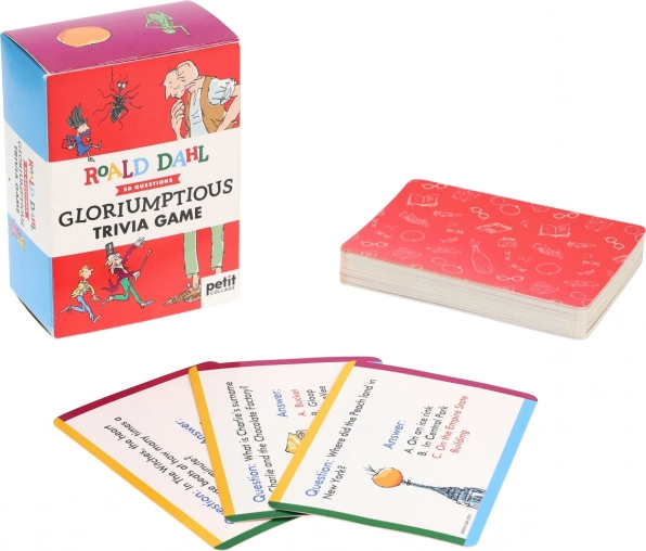 Tapkite Roaldo Dahlio istorijų meistru su viktorinos kortomis, kurios tikrina jūsų atmintį ir žinias. Rinkinyje yra 50 klausimų kortelių, kurios jums ir jūsų šeimai suteiks puikią pramogą namuose ar kelionėje. Dėl sero Quentino Blake’o iliustracijų kortos taip pat džiugina akį. Pagamintos iš 100% FSC sertifikuoto popieriaus ir spausdintos augaliniais dažais, jos atitinka griežtus ekologinius standartus.