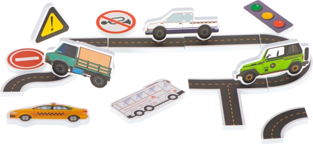 Putų dėlionė voniai su gatvės ir automobilių motyvu suteikia pramogą maudynių metu ir skatina vaikų fantaziją. Lengvai naudojama, padeda išvengti kasdienių kovų per maudynes.
