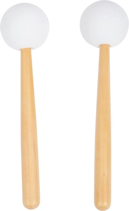Dvi lazdelės su baltomis apvaliomis galvutėmis suteikia minkštą, švarų toną, kuris yra švelnus vaikų klausai ir leidžia ilgiau groti be triukšmo.