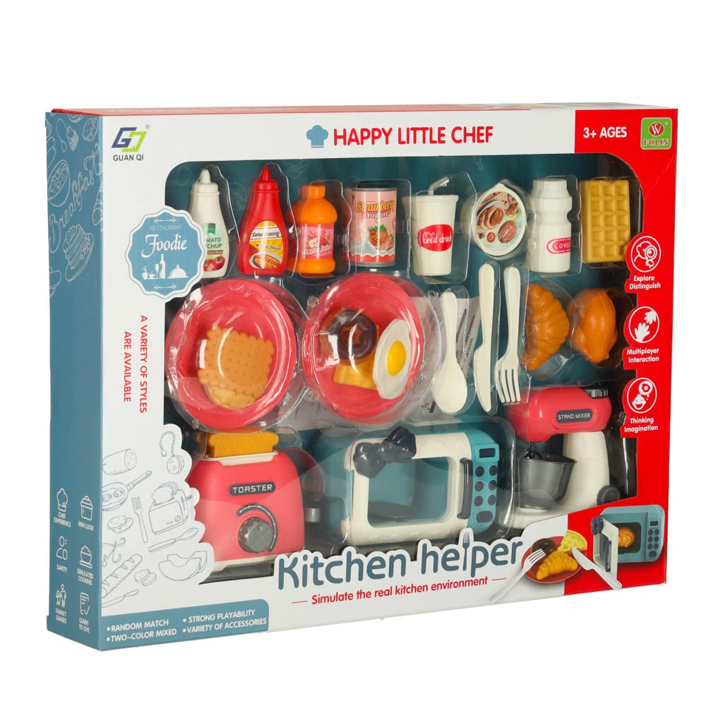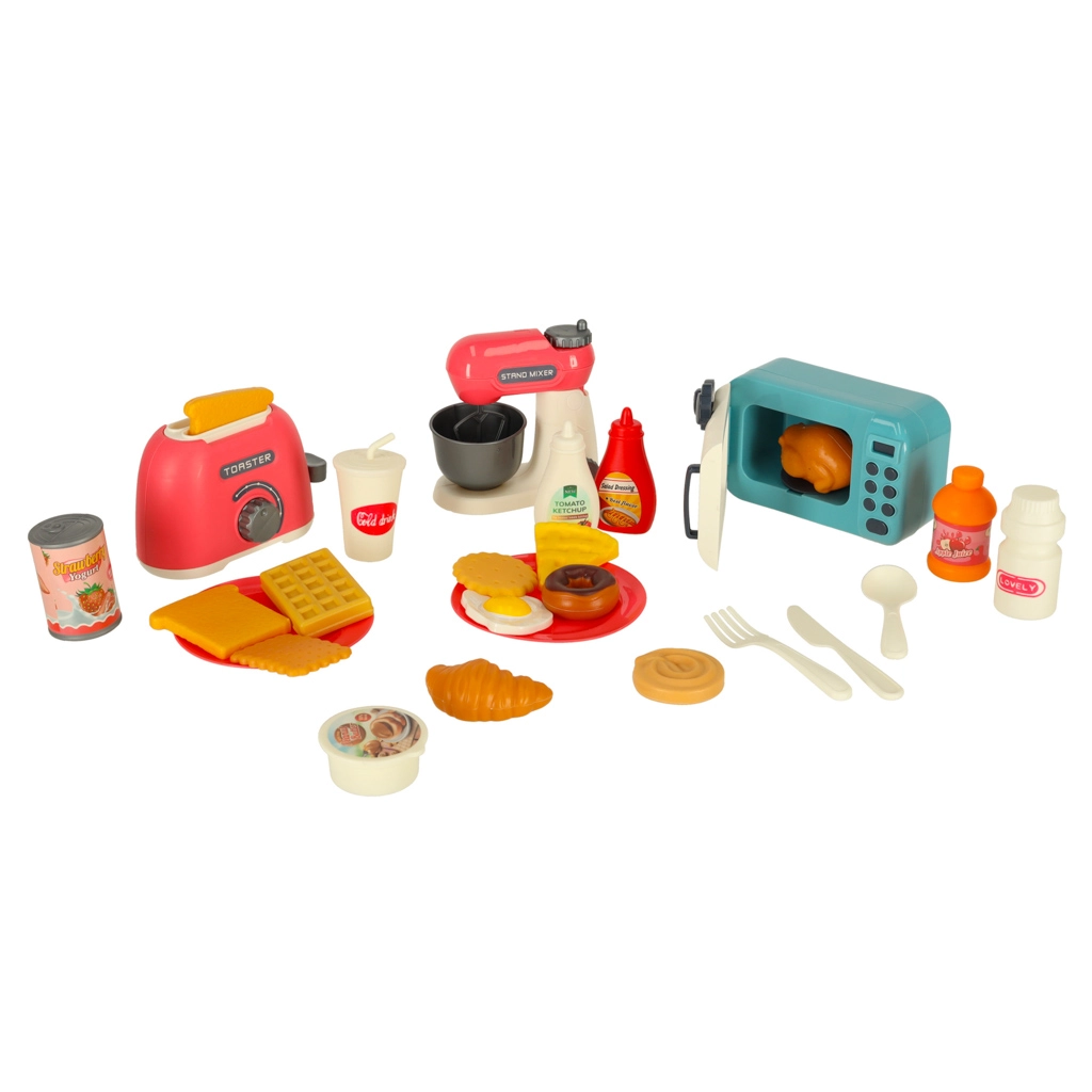 Vaikiškas virtuvės rinkinys su mikrobangų krosnele, skrudintuvu ir plaktuvu
