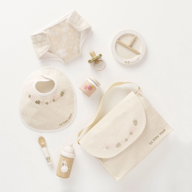 Rūpintis lėlėmis ir minkštais žaislais dar niekada nebuvo taip smagu ir įkvepiančiai. Le Toy Van priežiūros rinkinys siūlo pilną įrangą mažiesiems globėjams. Jame yra tekstilinis pervystymo krepšys su dekoratyviniu raštu, čiulptukas, seilinukas, sauskelnė, lėkštė, šaukštelis, tyrelių indelis ir buteliukas. Kiekvienas elementas sukurtas galvojant apie tvarumą ir kokybę, kad atlaikytų daugybę valandų žaidimų.