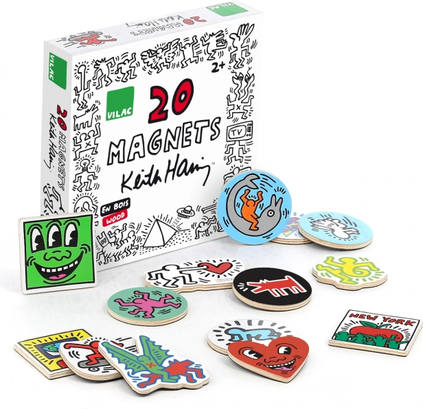 Originalus medinių magnetukų rinkinys su ikoniškomis KEITH HARING iliustracijomis pagyvins jūsų šaldytuvą, lentą ar vaikų kambarį. Magnetukai iš patvarios faneros turi kokybišką blizgų spaudą ir tvirtai laikosi ant metalinių paviršių. Puiki dovana patrauklioje dovanų dėžutėje, tinkama nuo 2 metų.
