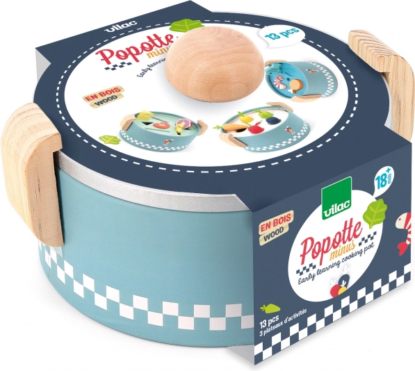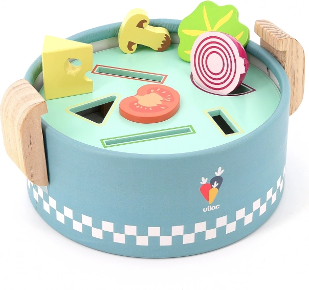 „VILAC“ įdedamas mini puodas – sumanus medinis žaislas patiems mažiausiems nuo 18 mėnesių. Po dangčiu slepiasi trys keičiamų plokštelių komplektai su skirtingomis formomis, į kurias vaikai deda ar meta spalvotus maisto gabalėlius. Taip gimsta „tikras“ virimas, kuris lavina vaizduotę ir praktinius įgūdžius.