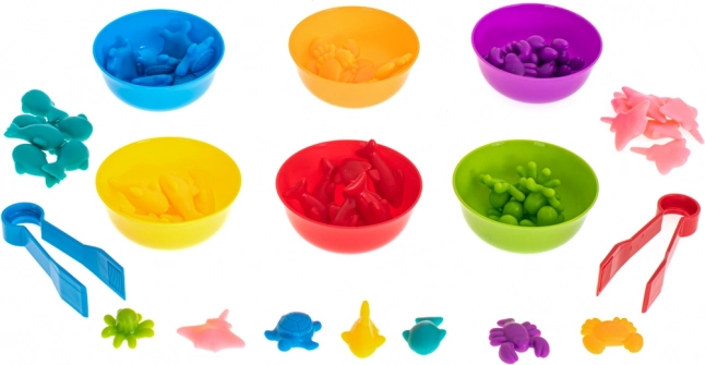 Šis edukacinis jūros gyvūnėlių rinkinys paverčia pirmuosius žingsnius matematikoje pramoga. Vaikai gali rūšiuoti figūrėles į dubenėlius pagal spalvas, jas skaičiuoti, lyginti kiekius ir kurti paprastus pavyzdžius. Be to, pincetai treniruoja suėmimą ir akių–rankų koordinaciją.