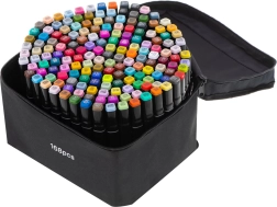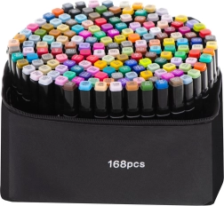Didelis rinkinys dvipusių alkoholinių žymeklių su 168 atspalviais patogiame dėkle lengvam nešiojimui. Kiekvienas žymeklis turi ploną antgalį detalėms ir įžambų platų antgalį plotams. Idealu iliustracijoms, eskizams, šešėliavimui ir užrašams. Sodrios, ilgalaikės spalvos ir aiškios spalvotos kepurėlės greitam pasirinkimui.