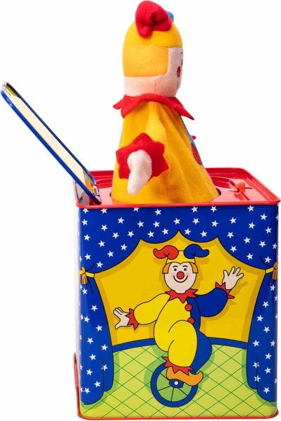 Ši muzikinė dėžutė su kaukučiu išsiskiria cirkuso grafika ir tvirta konstrukcija, kuri žada ilgalaikį džiaugsmą. Pasukus rankenėlę skamba melodija, kuri kiekvienam vaikui sukelia šypseną.