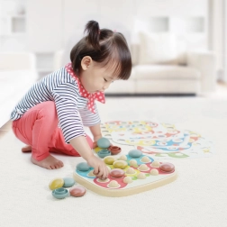 Kiekviena mozaikos detalė padeda lavinti akių–rankų koordinaciją ir smulkiąją motoriką dėl įvairiaspalvių kaištukų.
