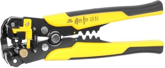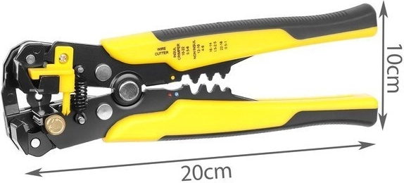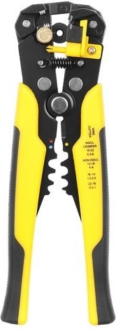 - Laidų izoliacijos nuėmimas – įstatykite laidą į žnyples, tvirtai suspauskite rankenas ir izoliacija bus lengvai pašalinta. Veikia su laidais, kurių skerspjūvis 0,2–6 mm2 (10–24 AWG).