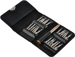 Precizinių atsuktuvų rinkinys 25-in-1 apima iš viso 24 keičiamus antgalius ir pagrindinį laikiklį. Idealiai tinka daugumos rinkoje esančių elektroninių įrenginių priežiūrai ir remontui.