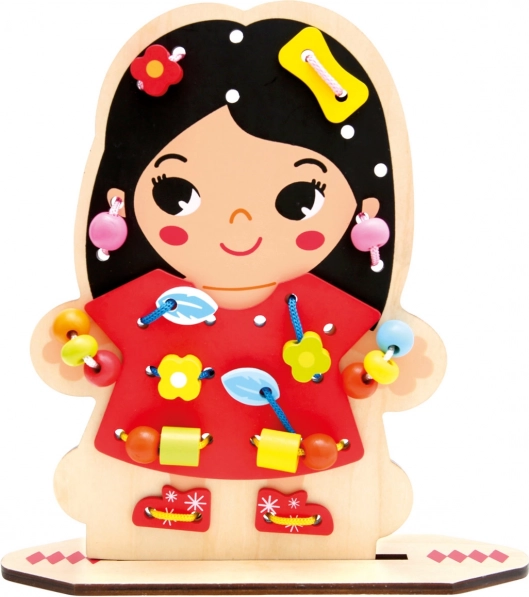 Atraskite kūrybišką medinį vėrimo žaidimą, kuris ilgam įtrauks vaikus ir kartu lavins jų įgūdžius. Iš abiejų pusių atspausdinta lentelė su personažu ir gausus priedų rinkinys skatina smulkiąją motoriką, rankos ir akies koordinaciją bei kūrybiškumą. Dėl 60 detalių vaikai lavina kantrybę, loginį mąstymą ir žaidimo forma mokosi problemų sprendimo.