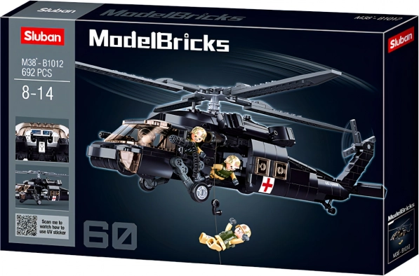 Pastatykite ikoninio gelbėjimo sraigtasparnio UH‑60 Black Hawk modelį iš Sluban ModelBricks serijos. 692 detalės, 4 figūrėlės ir funkcionalios detalės, tokios kaip besisukantys rotoriai bei įranga gelbėjimo misijoms, suteiks valandų kūrybiško žaidimo. Aukštos kokybės ABS plastikas, vidutinis sudėtingumas ir suderinamumas su LEGO, Cobi ir Mega Bloks pradžiugins ir mažus, ir didelius statytojus.