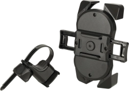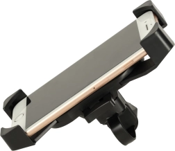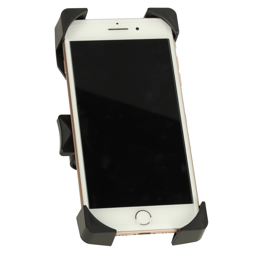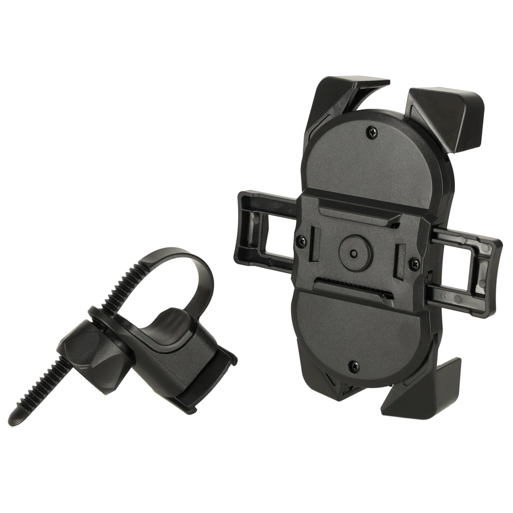 Keturi kampiniai laikikliai ir tvirta konstrukcija iš atsparaus plastiko patikimai laiko įrenginį vietoje net važiuojant per nelygų reljefą. Plati suderinamumo riba (nuo apie 12 × 6 cm iki 18 × 9 cm) apima daugumą išmaniųjų telefonų ir kompaktiškų navigacijų.