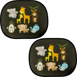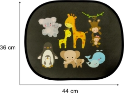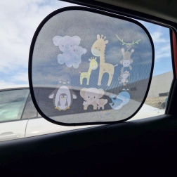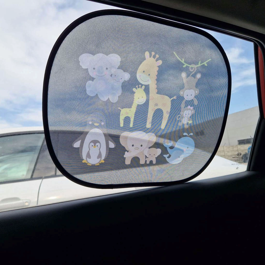 Mielos statinės saulės uždangos šoniniams automobilio langams, 2 vnt. rinkinyje, užtikrina vaikams ir suaugusiesiems patogią ir saugią kelionę. Pusiau pralaidus tinklelis su spalvotu gyvūnėlių motyvu veiksmingai mažina akinimą, padeda blokuoti UV spinduliuotę ir mažina salono perkaitimą. Montavimas be klijų ir be siurbtukų – pakanka uždangą pridėti prie švaraus ir sauso stiklo.