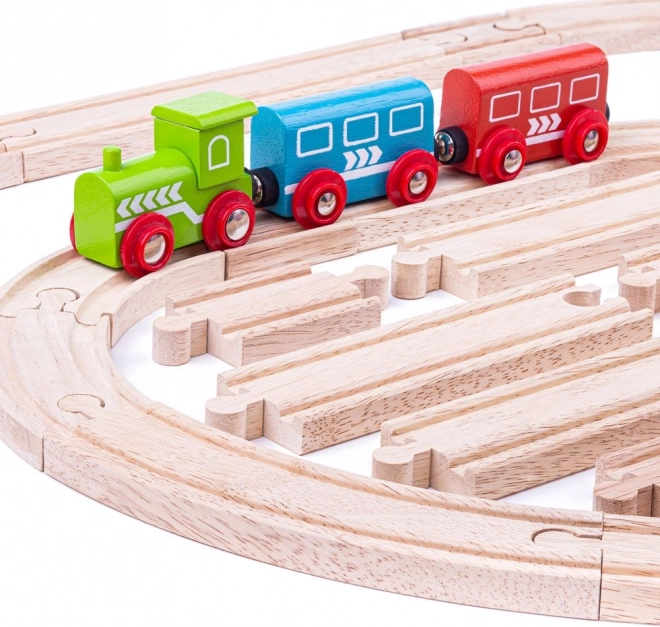 Bigjigs Rail medinių bėgių rinkinys suteikia vaikams galimybę begaliniam žaidimui ir kūrybiškumo ugdymui. Naudodami 24 detales jie gali lengvai kurti įvairias trasų konfigūracijas ir interaktyvias istorijas. Dėl aukštos kokybės natūralių medžiagų ir suderinamumo su kitais prekių ženklais šis rinkinys idealiai tinka kaip priedas arba esamos traukinių trasos plėtinys.