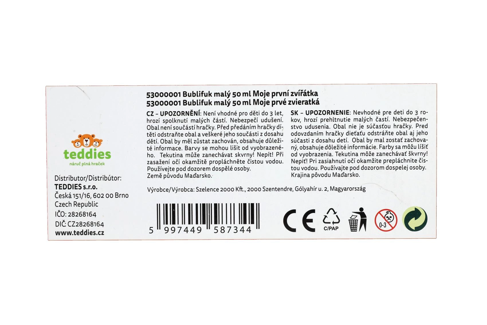 Linksmas muilo burbulų skystis su motyvu Mano pirmieji gyvūnėliai pradžiugins kiekvieną vaiką. Buteliuke yra 50 ml burbulų skysčio, dangtelyje integruotas žaidimas, o pūstukas yra dangtelio dalis. Puikiai tinka šventėms, žaidimams lauke ir kaip mažas prizas. Tinka vaikams nuo 6 metų.