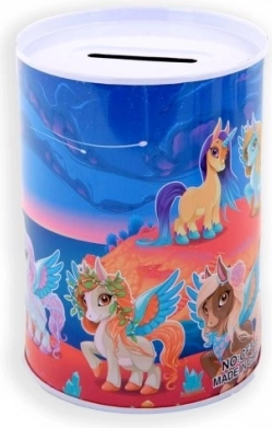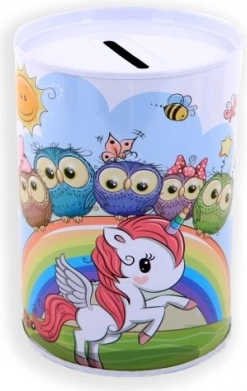 Metalinė taupyklė su vienaragio motyvu yra ne tik praktiškas pagalbininkas taupymui, bet ir puikus dekoratyvinis akcentas vaiko kambaryje. Jos spalvingos vienaragių, vaivorykštės ir žvaigždžių iliustracijos pradžiugins kiekvieną vaiką.