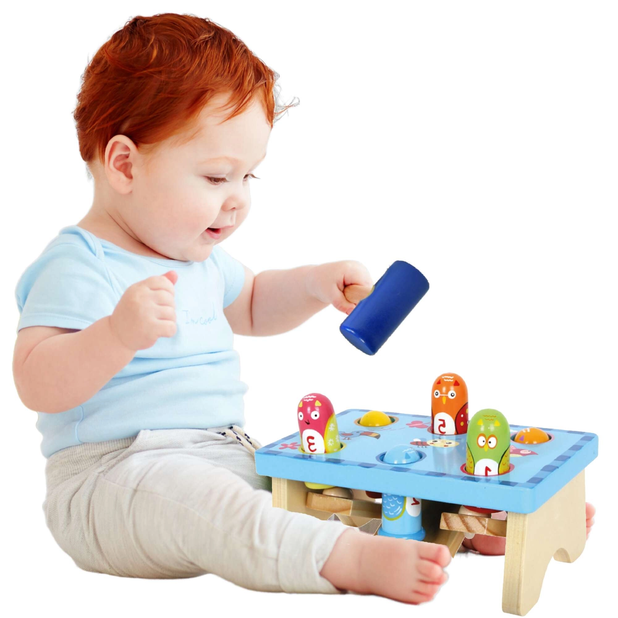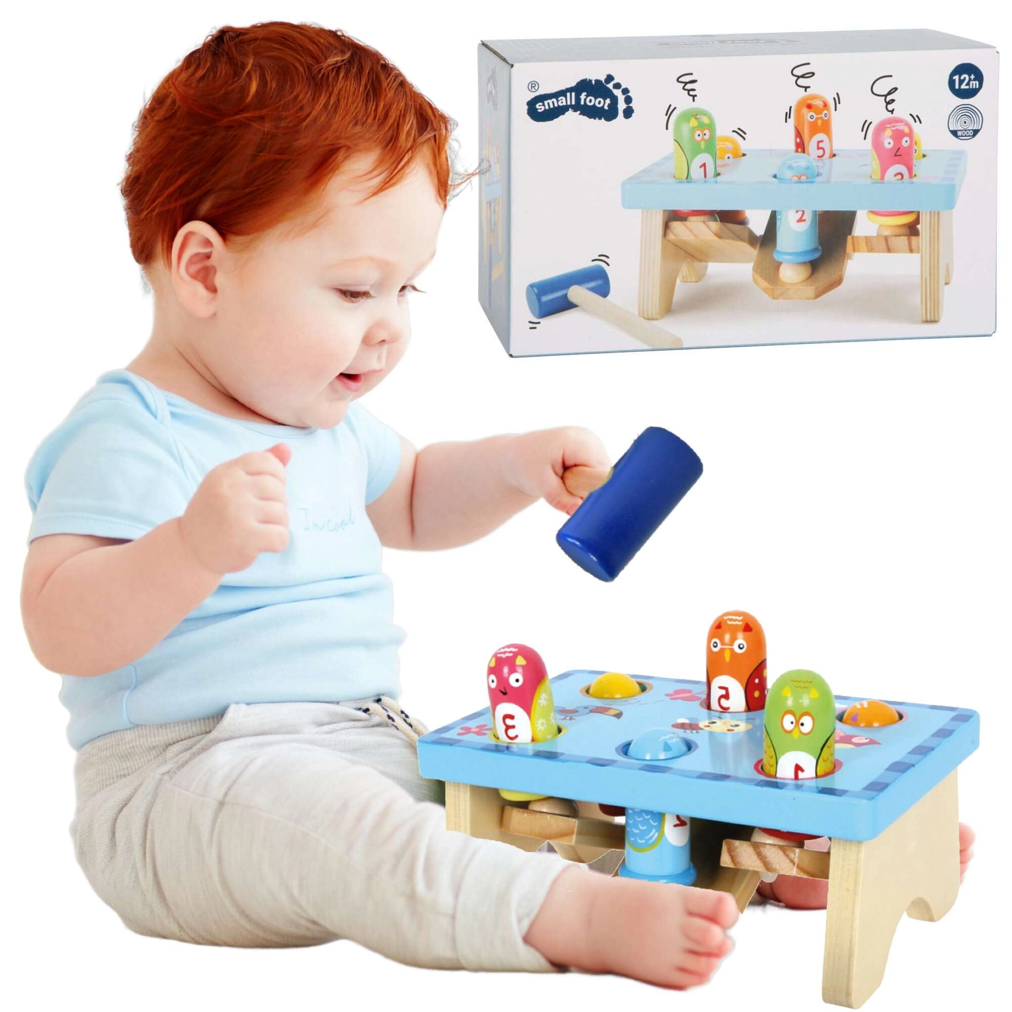 Dėl tvirto apdirbimo ir ergonomiško plaktuko vaikai lavina smulkiąją motoriką, judesių koordinaciją ir kantrybę. Spalvoti ir sunumeruoti kaiščiai padeda atpažinti spalvas ir skaičiuoti, tad žaidimas natūraliai susilieja su mokymusi.