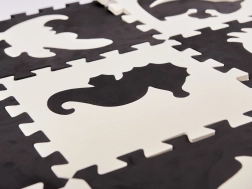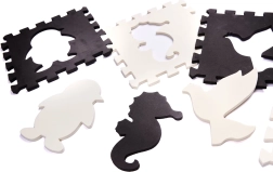Sudėkite didelį putų kilimėlį su nuimamais elementais įvairių formų ir spalvų.