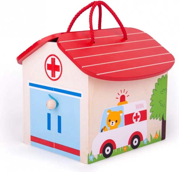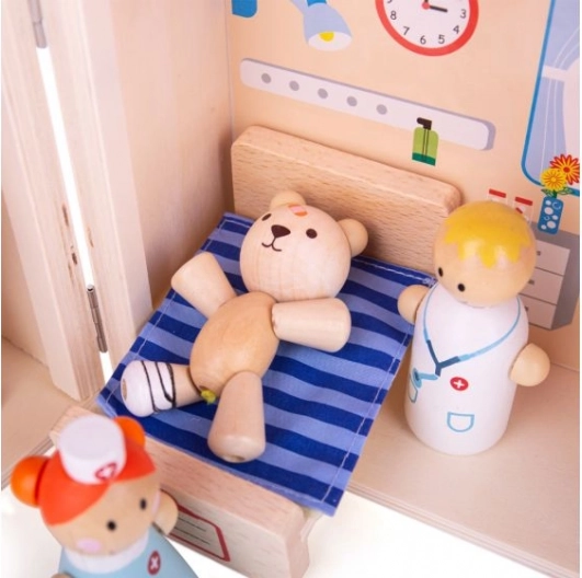 Šis kompaktiškas ir nešiojamas Meškiuko ligoninės žaidimų rinkinys idealiai tinka mažiesiems gydytojams. Medinė konstrukcija yra patvari ir pagaminta iš aukštos kokybės medžiagų, atitinkančių visus Europos saugos standartus. Žaislas turi devynis žaidimo elementus, leidžiančius vaikams kurti įvairius scenarijus ir situacijas.