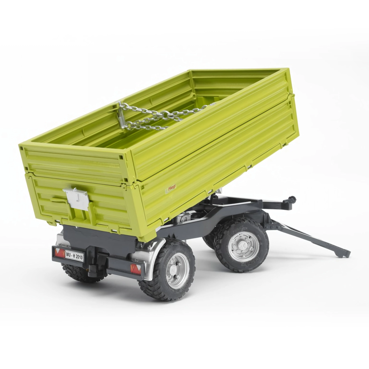Ši detaliai ištobulinta FLIEGL priekaba yra idealus BRUDER 3000 serijos traktorių priedas. Priekinėje dalyje esančiu perjungikliu lengvai pasirinksite vartymo kryptį – atgal, į kairę arba į dešinę. Šoniniai bortai, vartant į šoną, gali būti atidaromi, o paaukštinimai pagal poreikį nuimami.