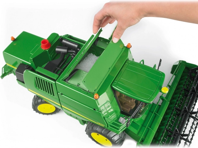 Šis detaliai išbaigtas BRUDER kombainas masteliu 1:16 ištikimai atkuria tikrąjį John Deere T670i. Dėl funkcinių dalių – nuo pasukamos pjaunamosios per vairuojamus galinius ratus iki išlankstomų viršutinių ir šoninių dangčių – vaikai supras tikrus derliaus nuėmimo principus ir mėgausis valandomis kūrybiško žaidimo.