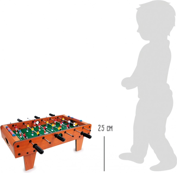 Smagus ant stalo statomas stalo futbolas iš small foot siūlo greitą ir įtemptą žaidimą vaikams ir suaugusiesiems. Kompaktiški matmenys leidžia žaisti bet kur, o kokybiška medinė konstrukcija užtikrina stabilumą ir ilgaamžiškumą. Komplekte yra 2 kamuoliukai ir rankiniai įvarčių skaitikliai. Žaidimas puikiai lavina akies ir rankos koordinaciją ir suteikia valandų valandas pramogų namuose ar atostogaujant.